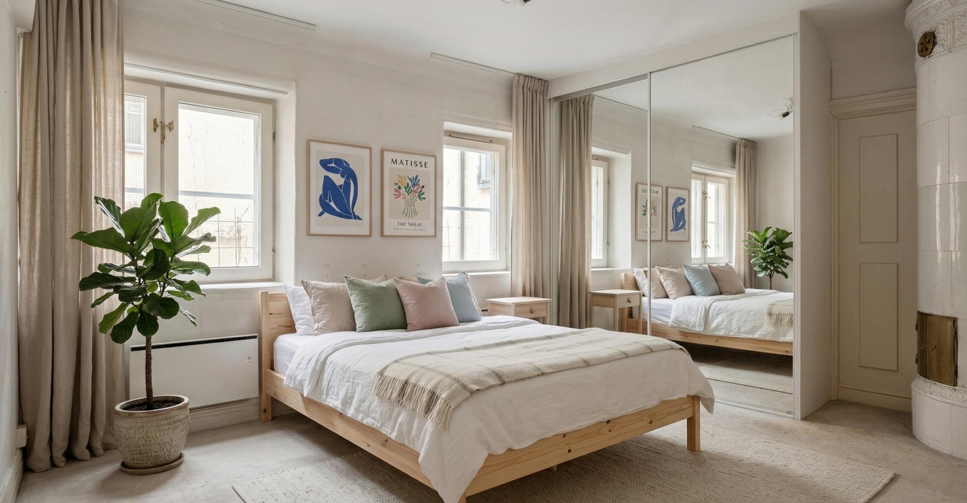 Två fönster mot gården. En kakelugn som ej är i bruk