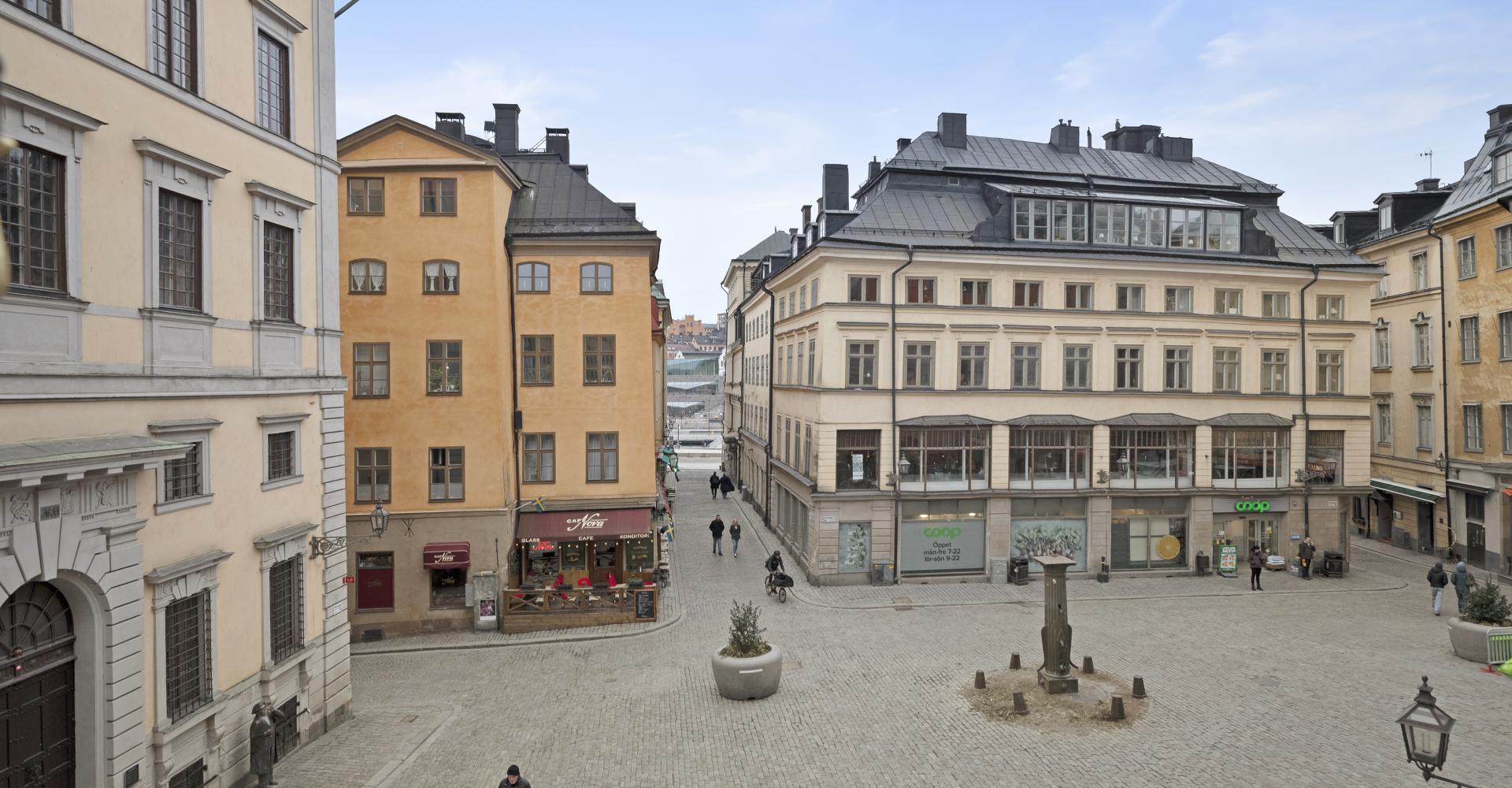 Att bo i Gamla stan är att leva mitt i Stockholms själ. Bland kullerstensgränder och färgstarka fasader möts stadens rika historia och ett levande nutidsliv. Området bjuder på en unik atmosfär där varje kvarter berättar sin egen historia från medeltida byggnader och anrika torg till små butiker, gallerier och caféer med internationell puls. Vid T-banestationen finns den välsorterade Munkbrohallen och rakt över torget ligger ett Coop Nära med postservice, båda med mycket generösa öppettider.