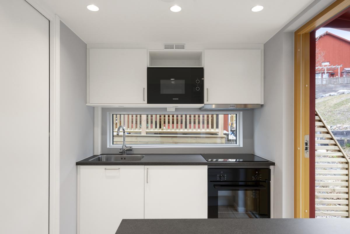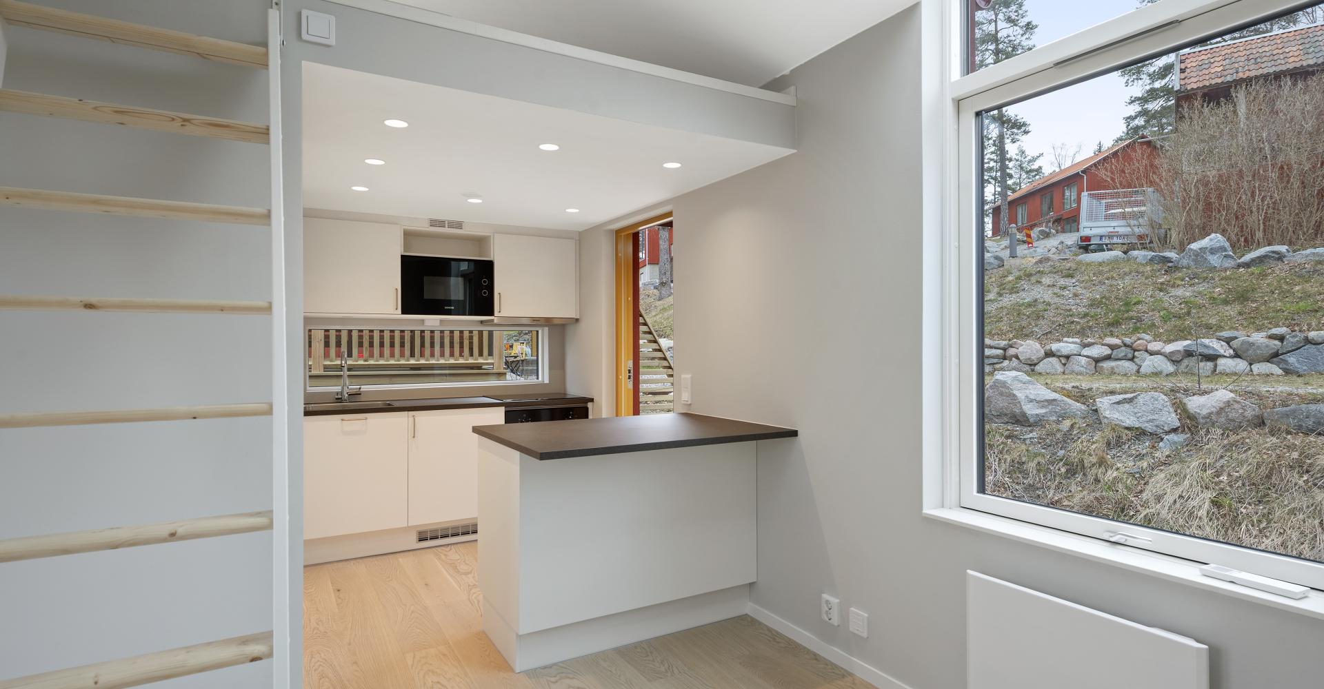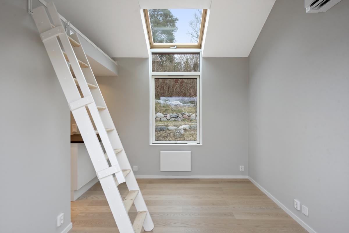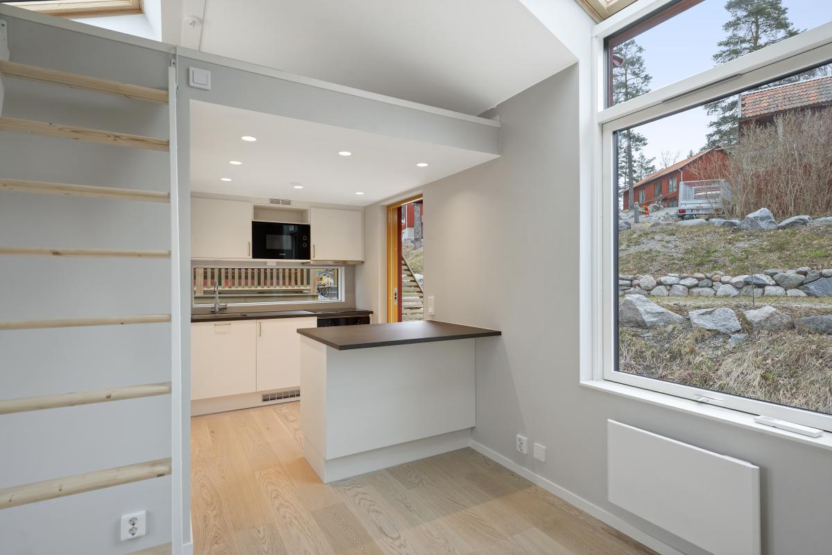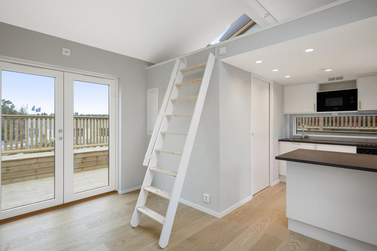 Helt nybyggt Attefallshus med trädäckad altan. Rum med parkettgolv och luftvärmepump, öppen planlösning mot köket med vitvaror från Siemens. Från rummet finns trappa upp till loftet som är c:a 10 kvm. Loftet har takfönster. Helkaklat badrum med golvvärme och tvättmaskin kombinerad torktumlare. Både från rum och badrum är det utgång till altanen.