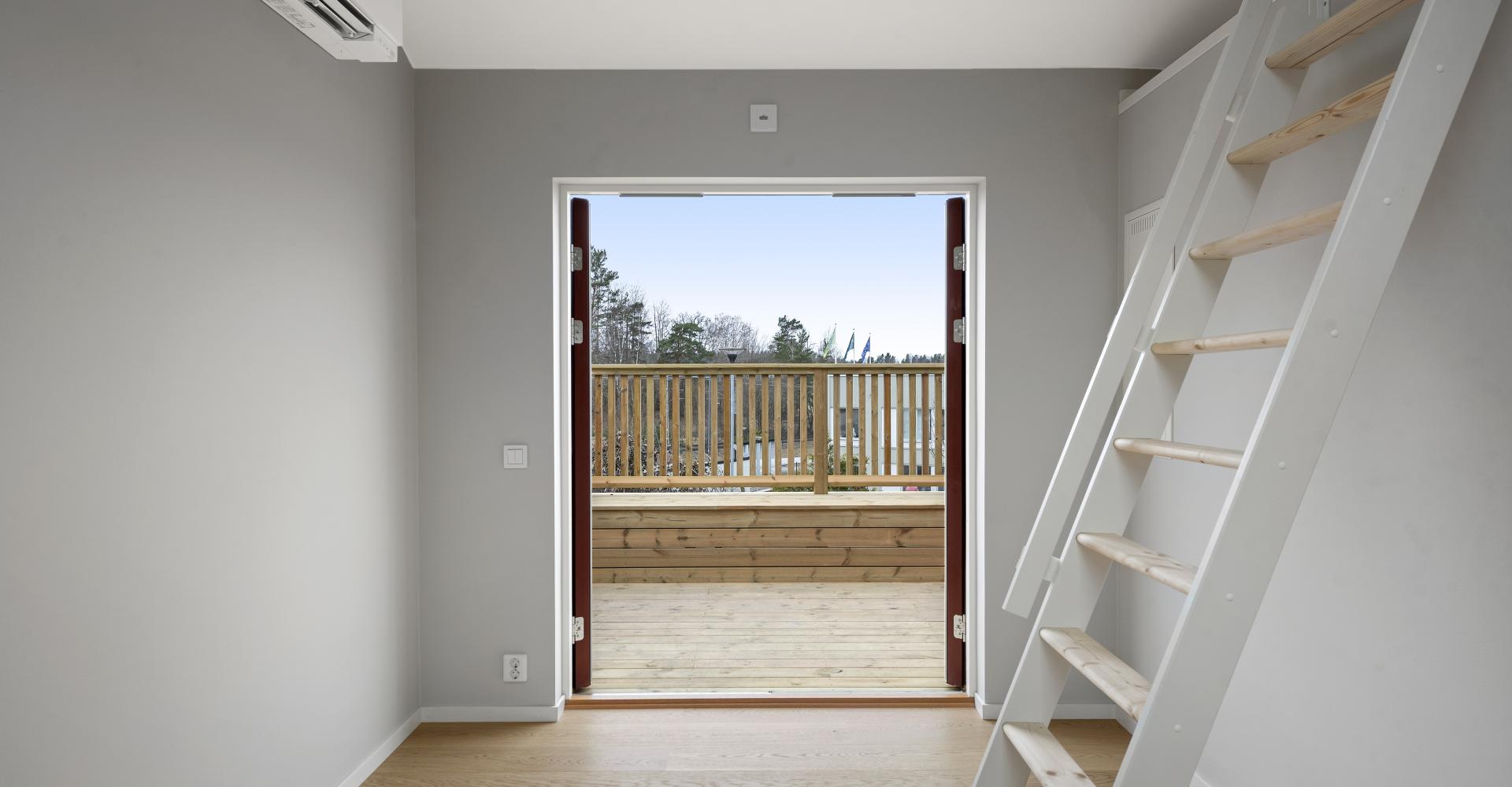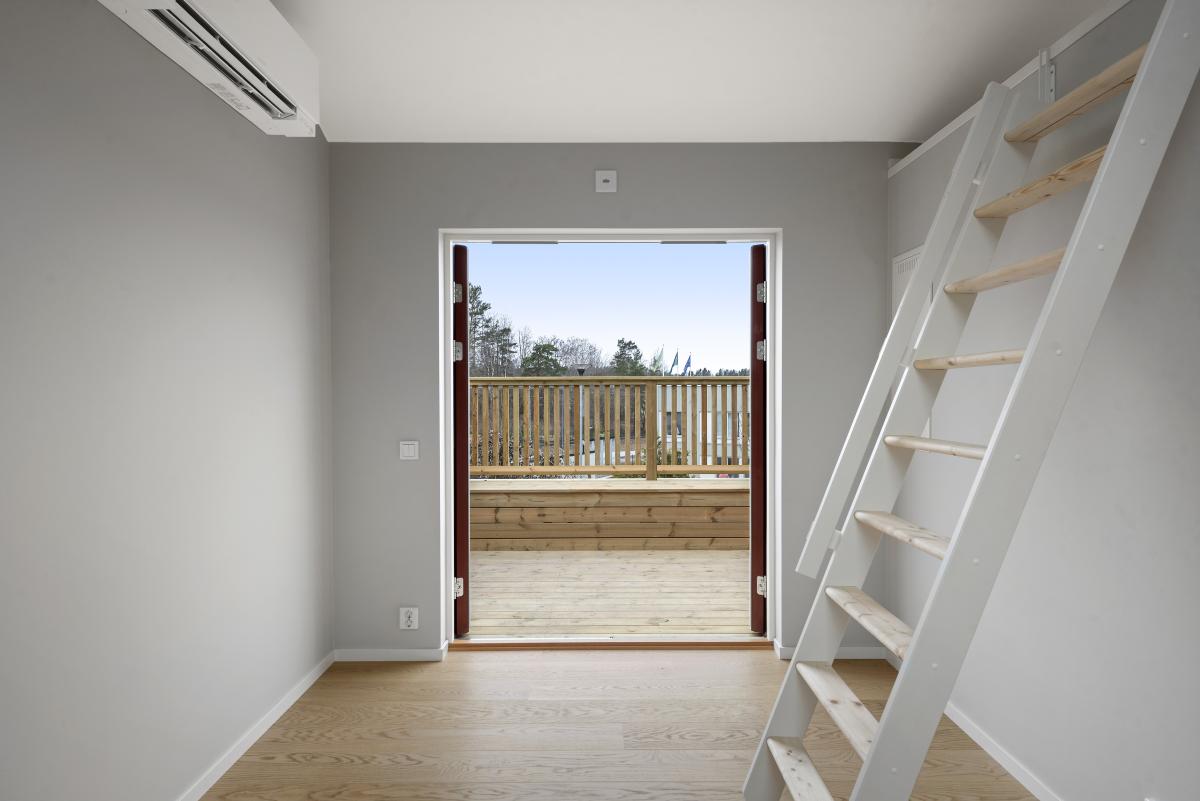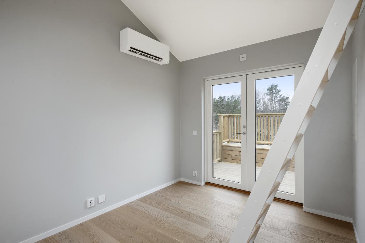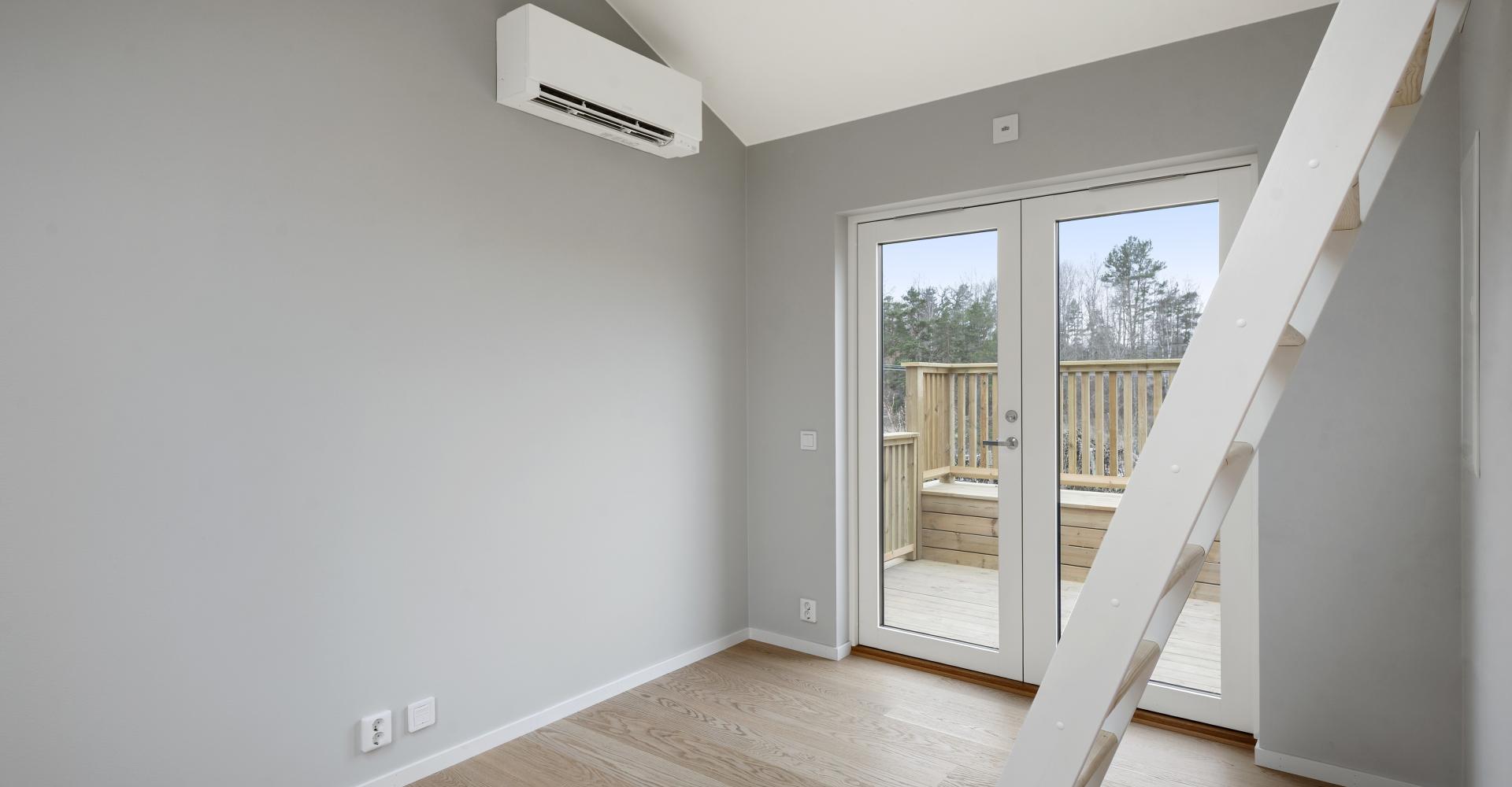 Rum med parkettgolv, luftvärmepump samt utgång till altan.