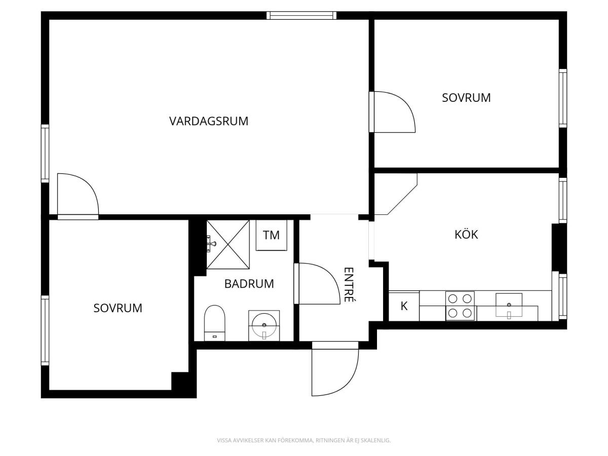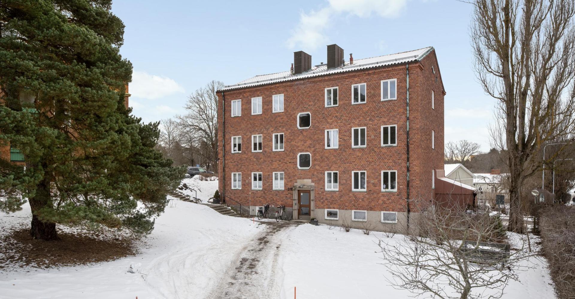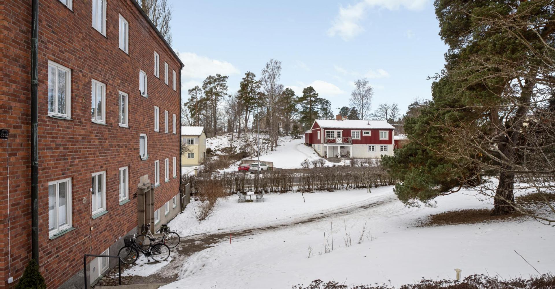 Lägenheten ligger högst upp till höger i fastigheten och har fönster i tre väderstreck