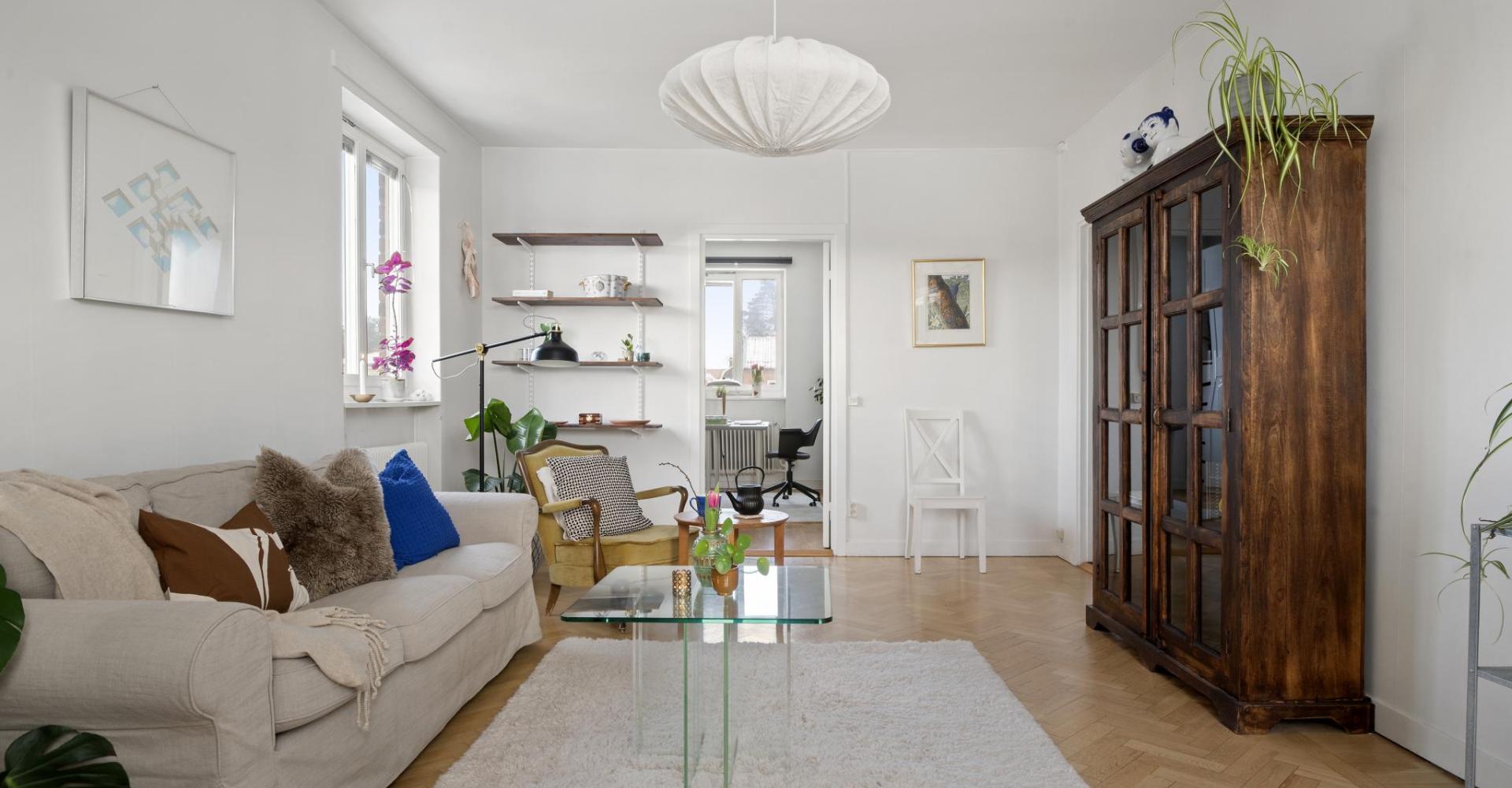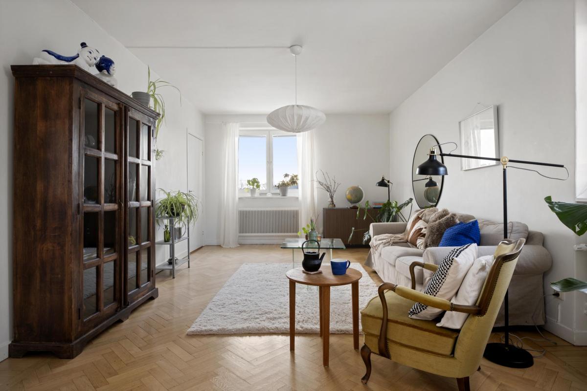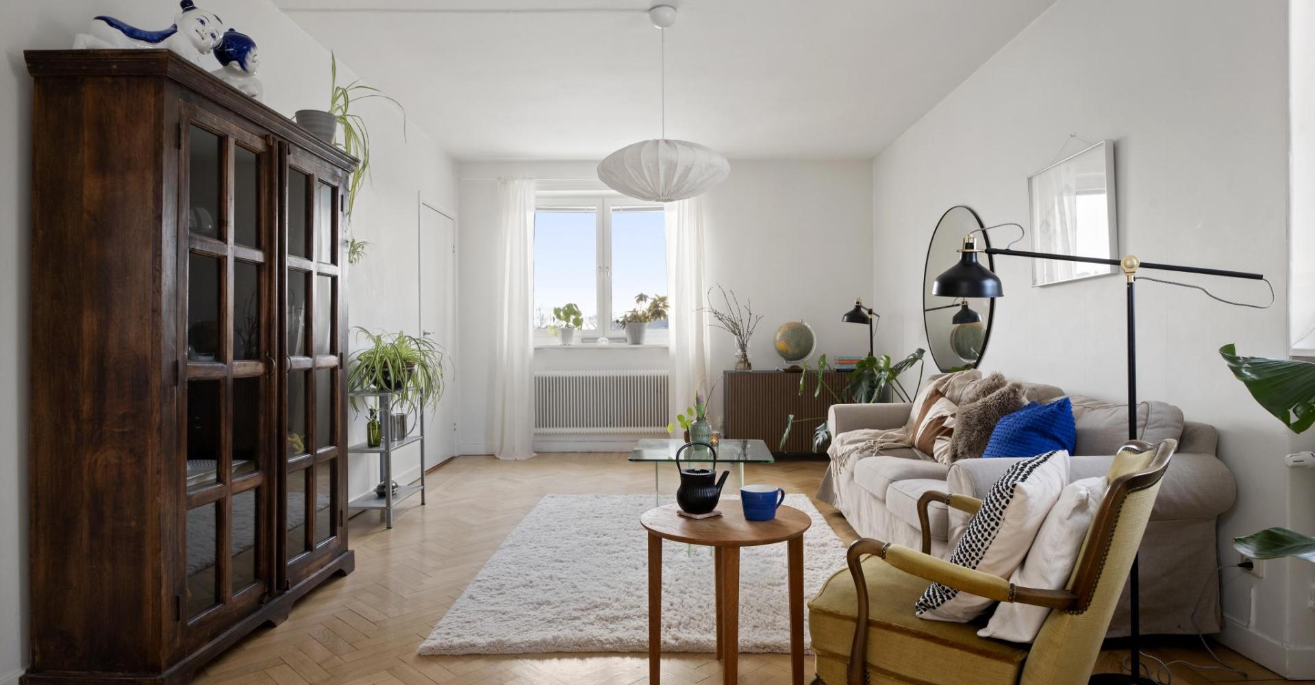 Välplanerad gavellägenhet högt upp i huset – med fri utsikt och charm från första stund