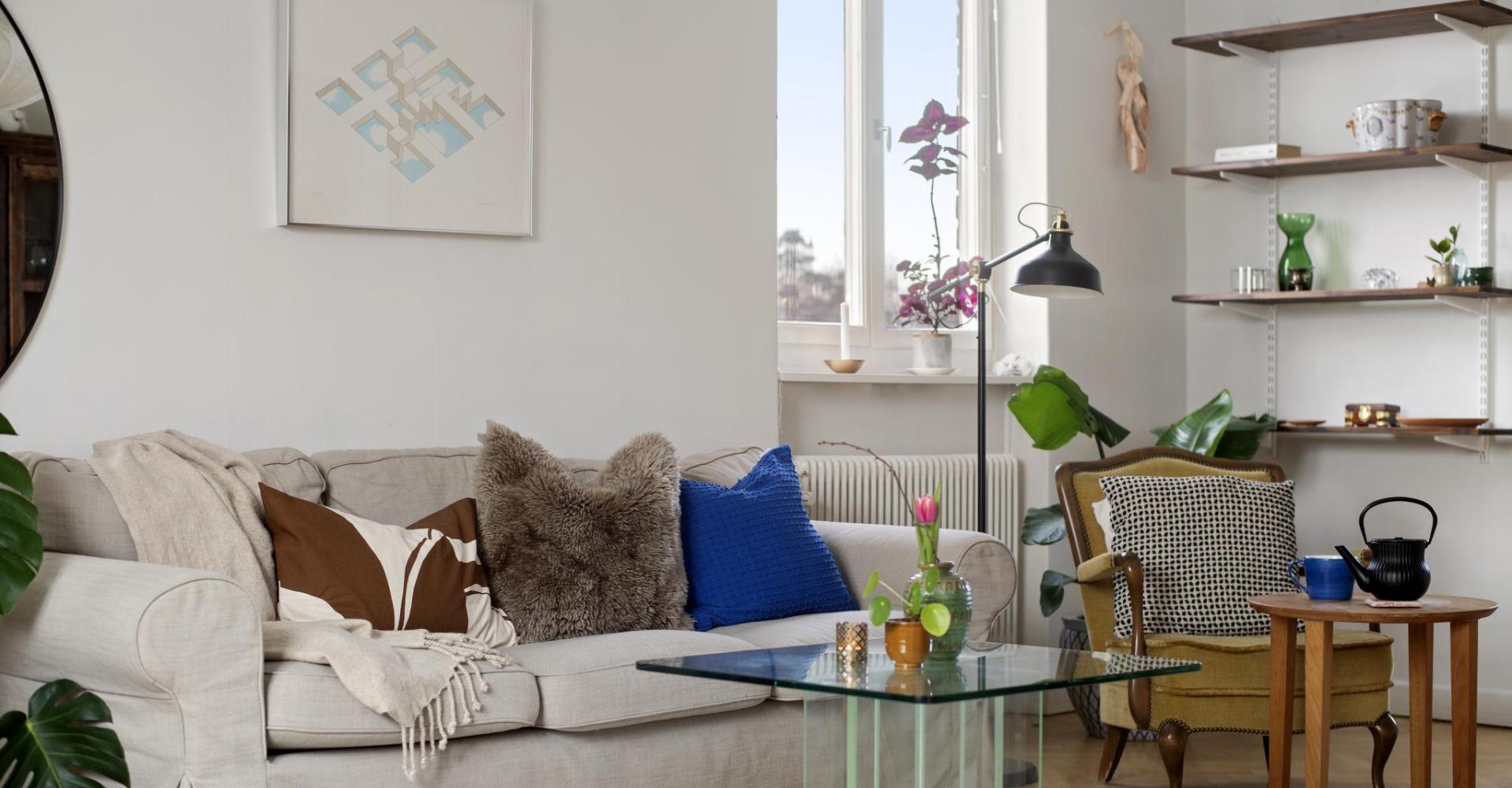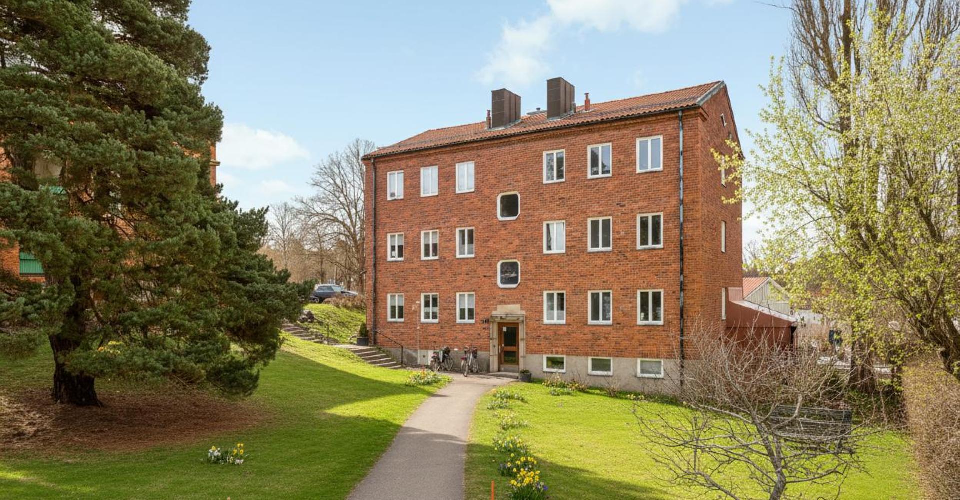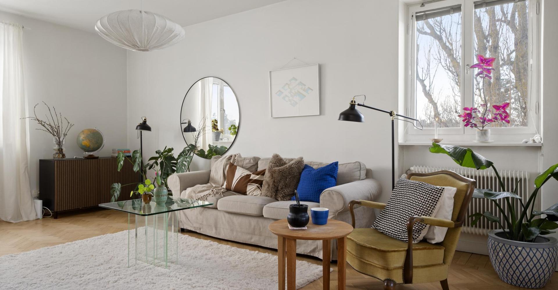 Välplanerad gavellägenhet högt upp i huset – med fri utsikt och charm från första stund