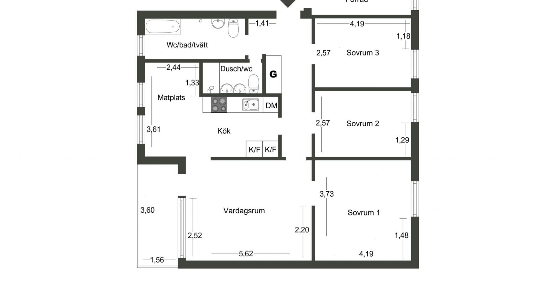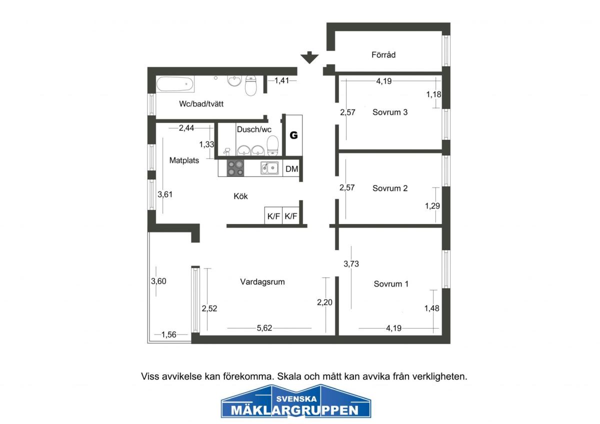 Till lägenheten hör även ett förråd precis utanför entrédörren.