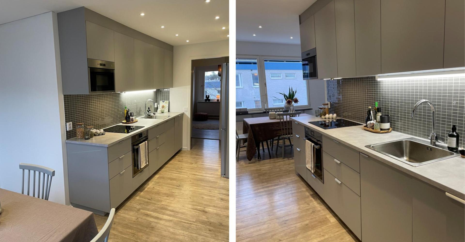 Helt nytt kök i gråton är nyligen installerat. Spishäll/induktion, varmluftsugn, mikro, fläkt, diskmaskin samt kyl/frys x 2.