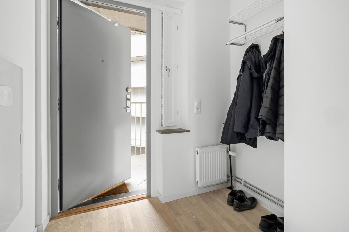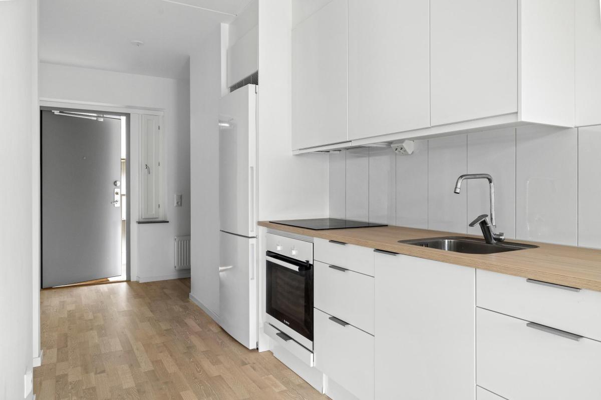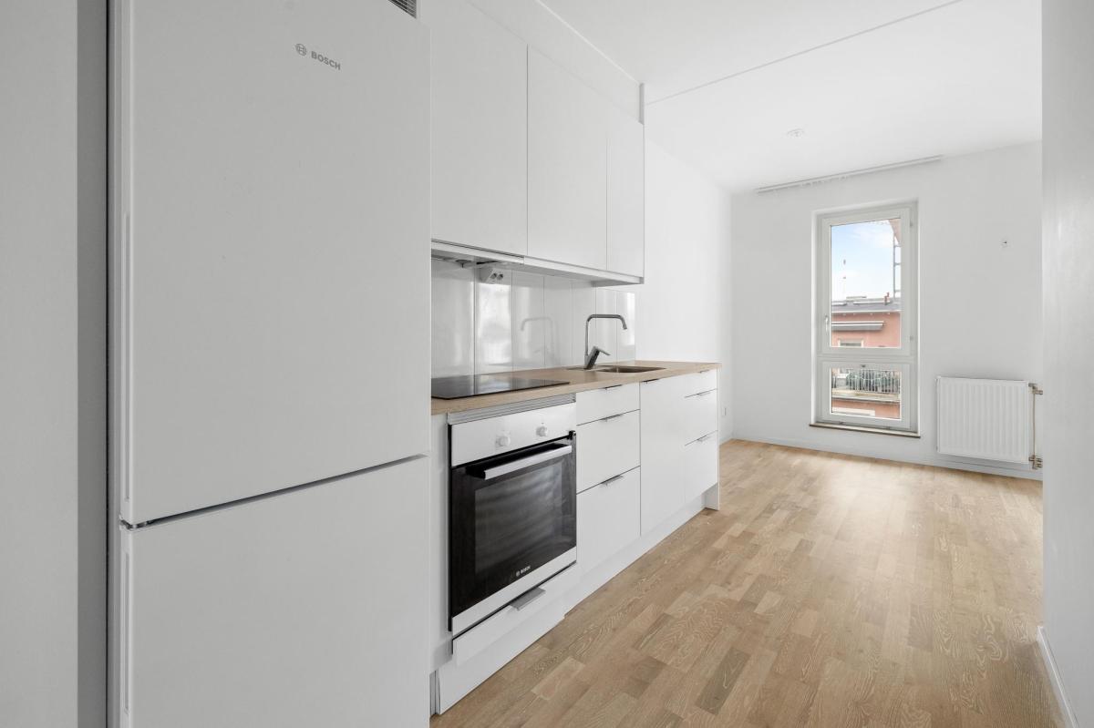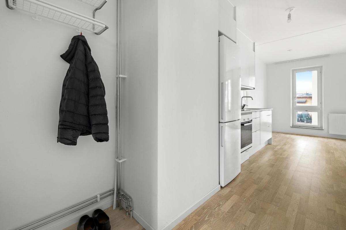 Mycket välplanerad lägenhet i toppskick belägen på våning fem med härlig utsikt och balkong i västerläge. Riksbyggens hus stod färdiga 2021 och är ett mycket trivsamt boende i Täby Park. Lägenheten som kallas 1,5:a har genomgående ljust ekgolv och vitmålade väggar. Välkomnande hall som fortsätter in i lägenheten. Vardagsrum med fint ljusinsläpp och utgång till balkong i väster. Sovalkov med skjutdörrsgarderob. Kök från Marbodal med matplats vid fönster. Helaklat badrum med klinkergolv och tvättmaskin kombinerad torktumlare.
