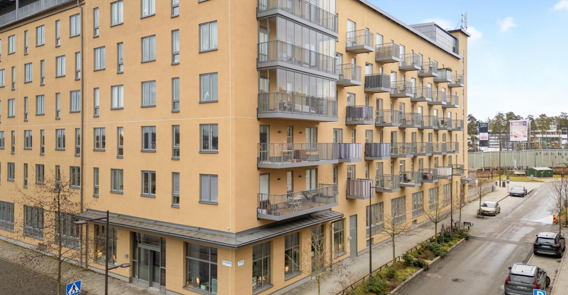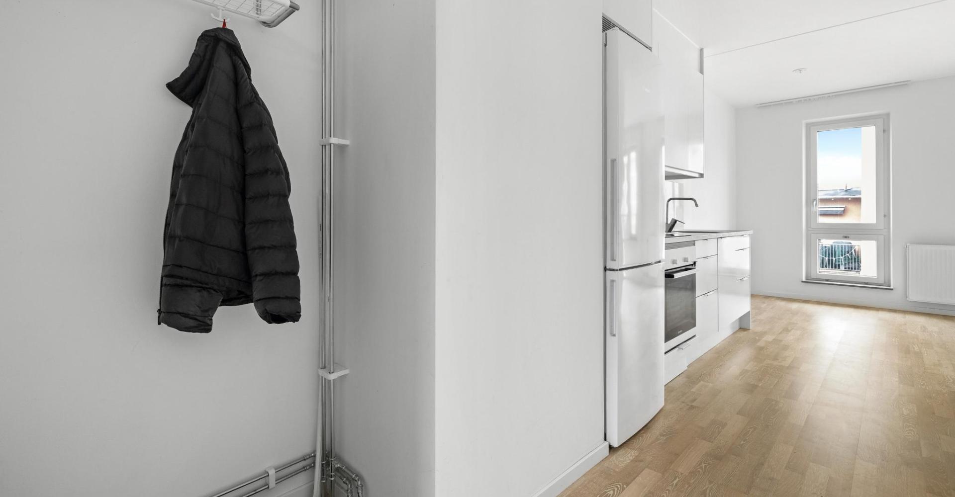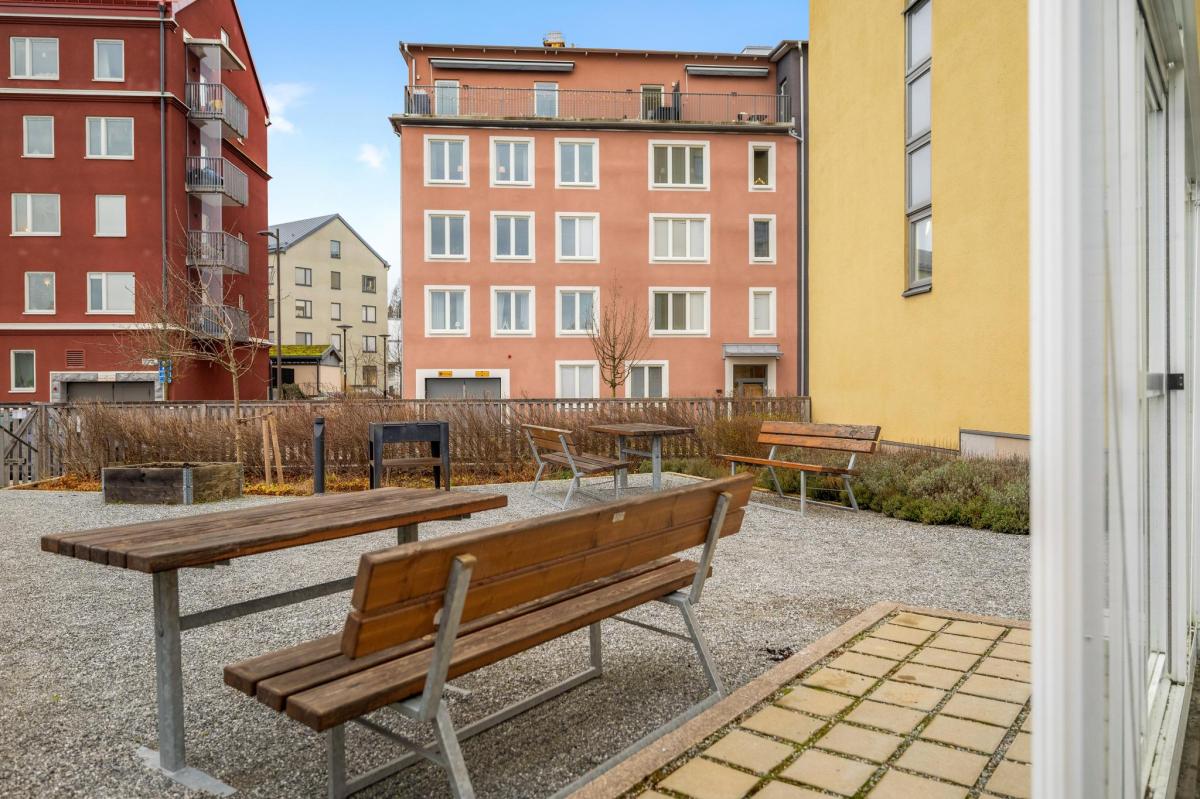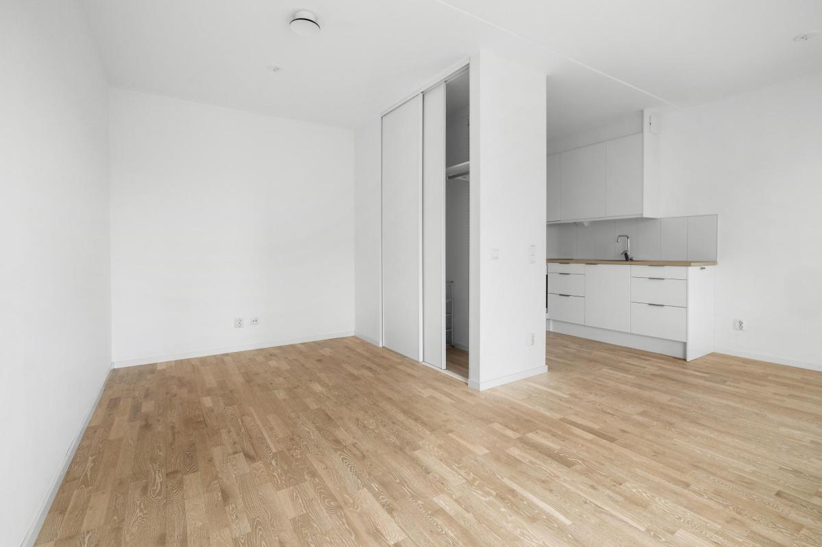 Mycket välplanerad lägenhet i toppskick belägen på våning fem med härlig utsikt och balkong i västerläge. Riksbyggens hus stod färdiga 2021 och är ett mycket trivsamt boende i Täby Park. Lägenheten som kallas 1,5:a har genomgående ljust ekgolv och vitmålade väggar. Välkomnande hall som fortsätter in i lägenheten. Vardagsrum med fint ljusinsläpp och utgång till balkong i väster. Sovalkov med skjutdörrsgarderob. Kök från Marbodal med matplats vid fönster. Helaklat badrum med klinkergolv och tvättmaskin kombinerad torktumlare.