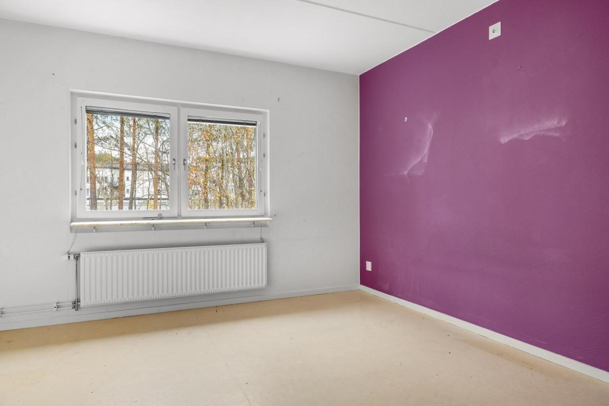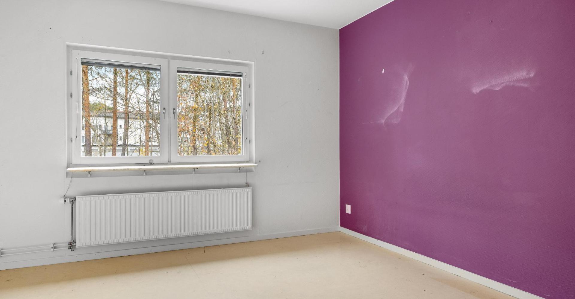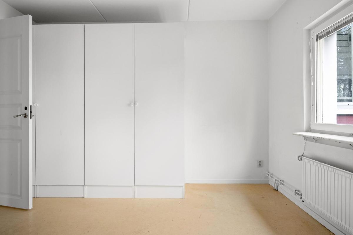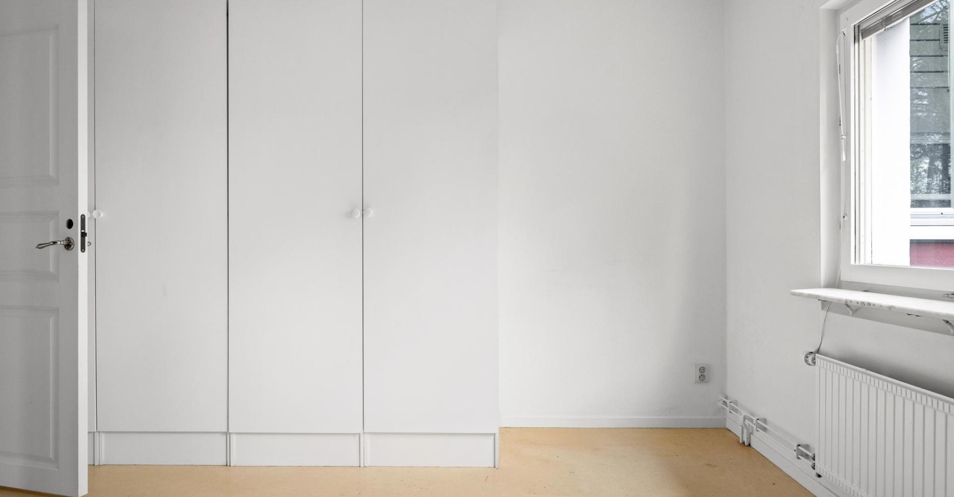 Sovrum med plastmatta, målade väggar samt 4 garderober.