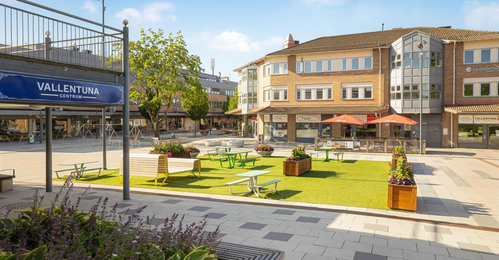 Vallentuna centrum med Bl.a. mataffärer, klädaffärer, apotek samt vårdcentral