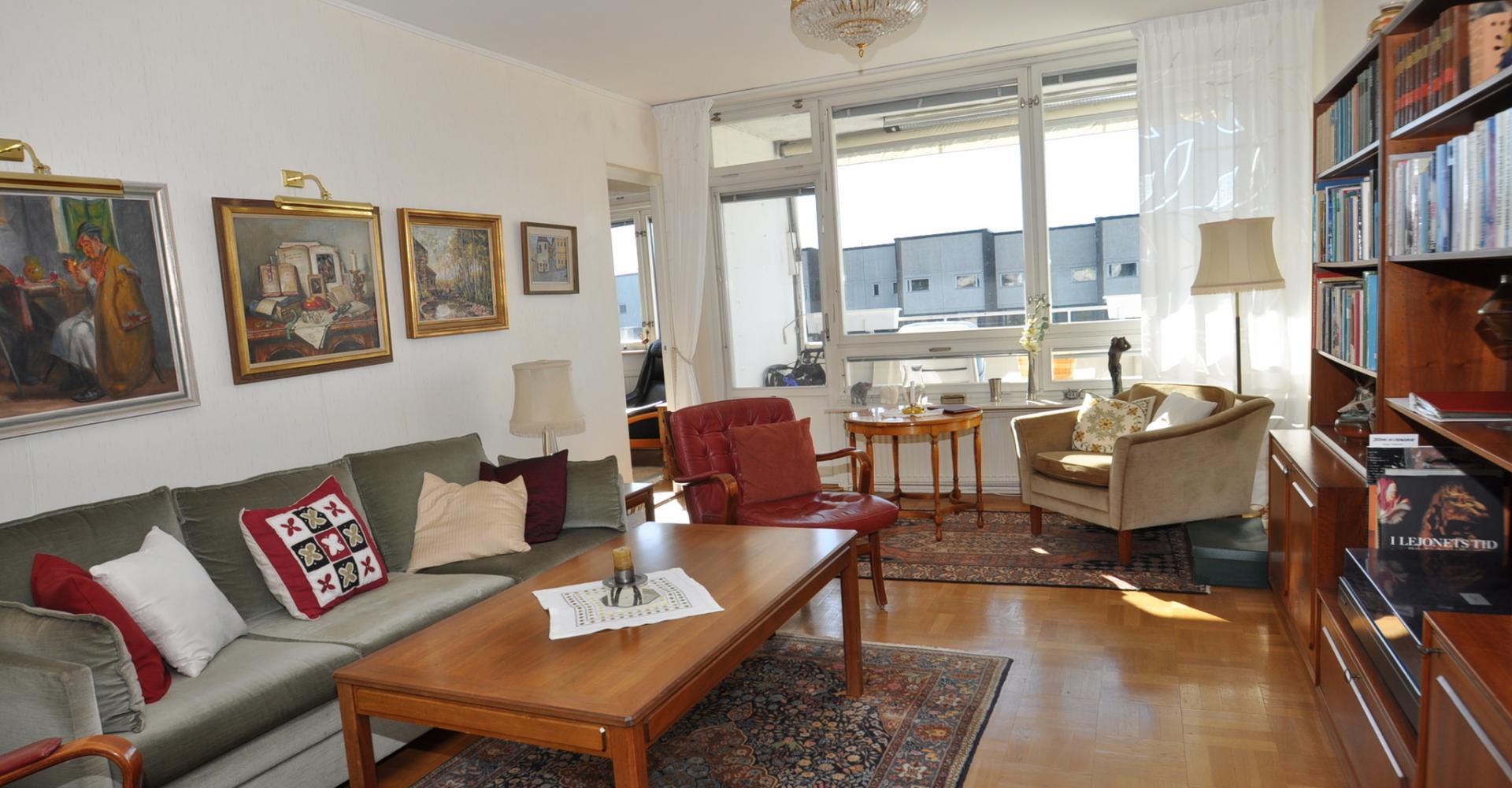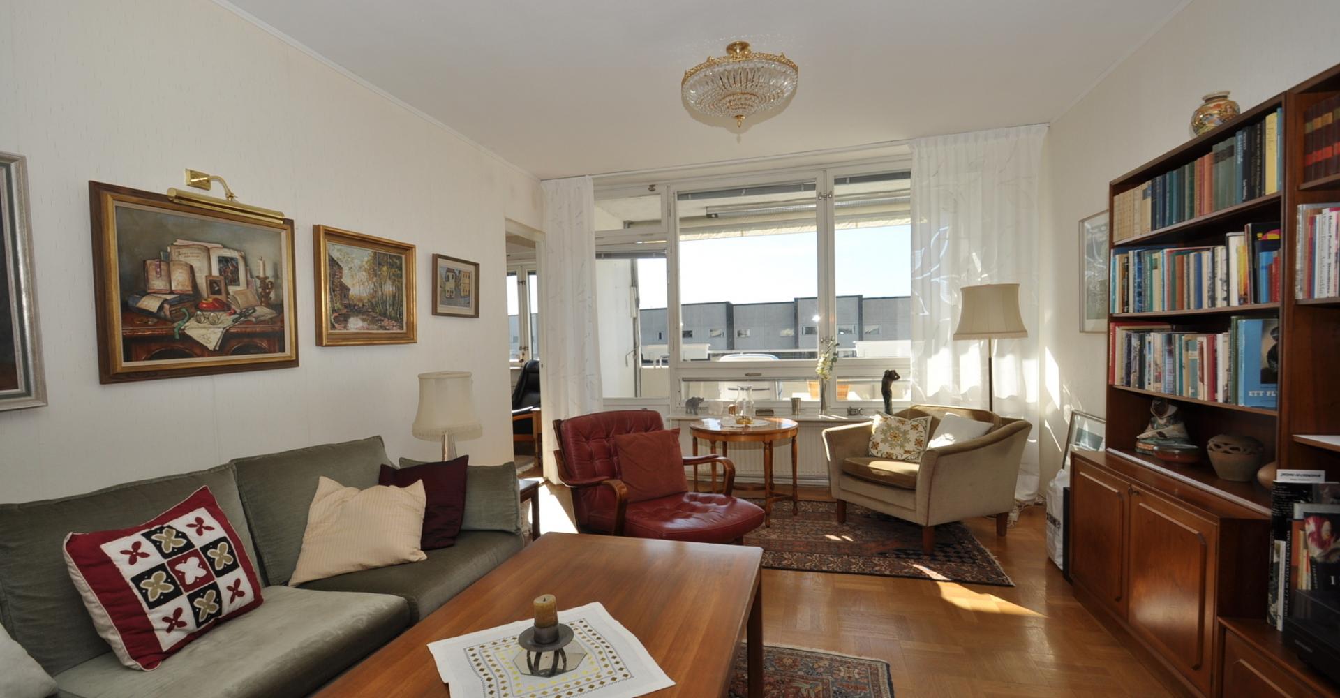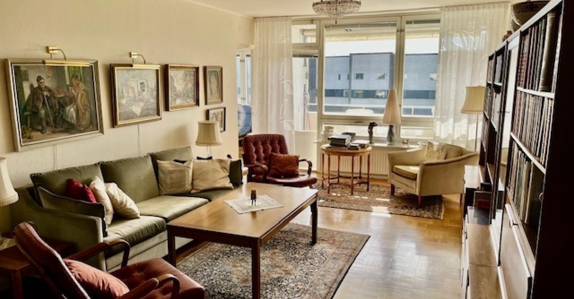 Trivsam genomgående lägenhet med stort ljusinsläpp 118 kvm 6 RoK med balkong i söderläge.
