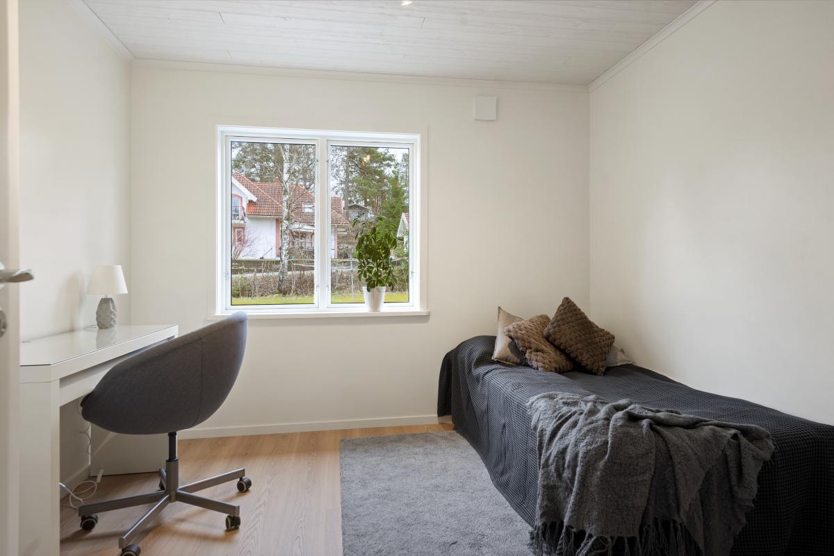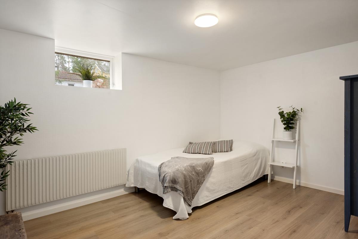 Sovrum med laminatgolv -26, målade väggar och tak -26.
