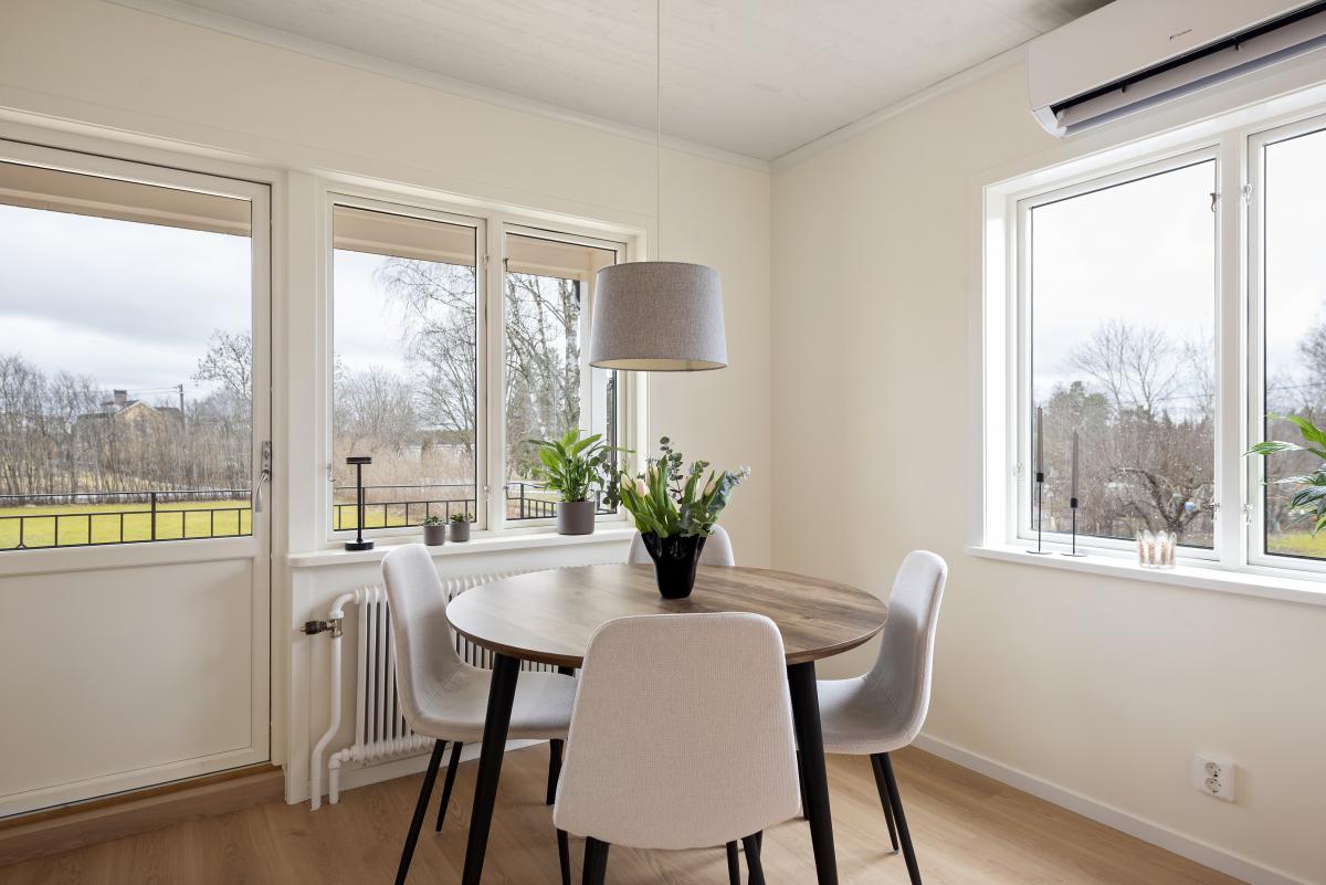 Matplats med utgång till altan