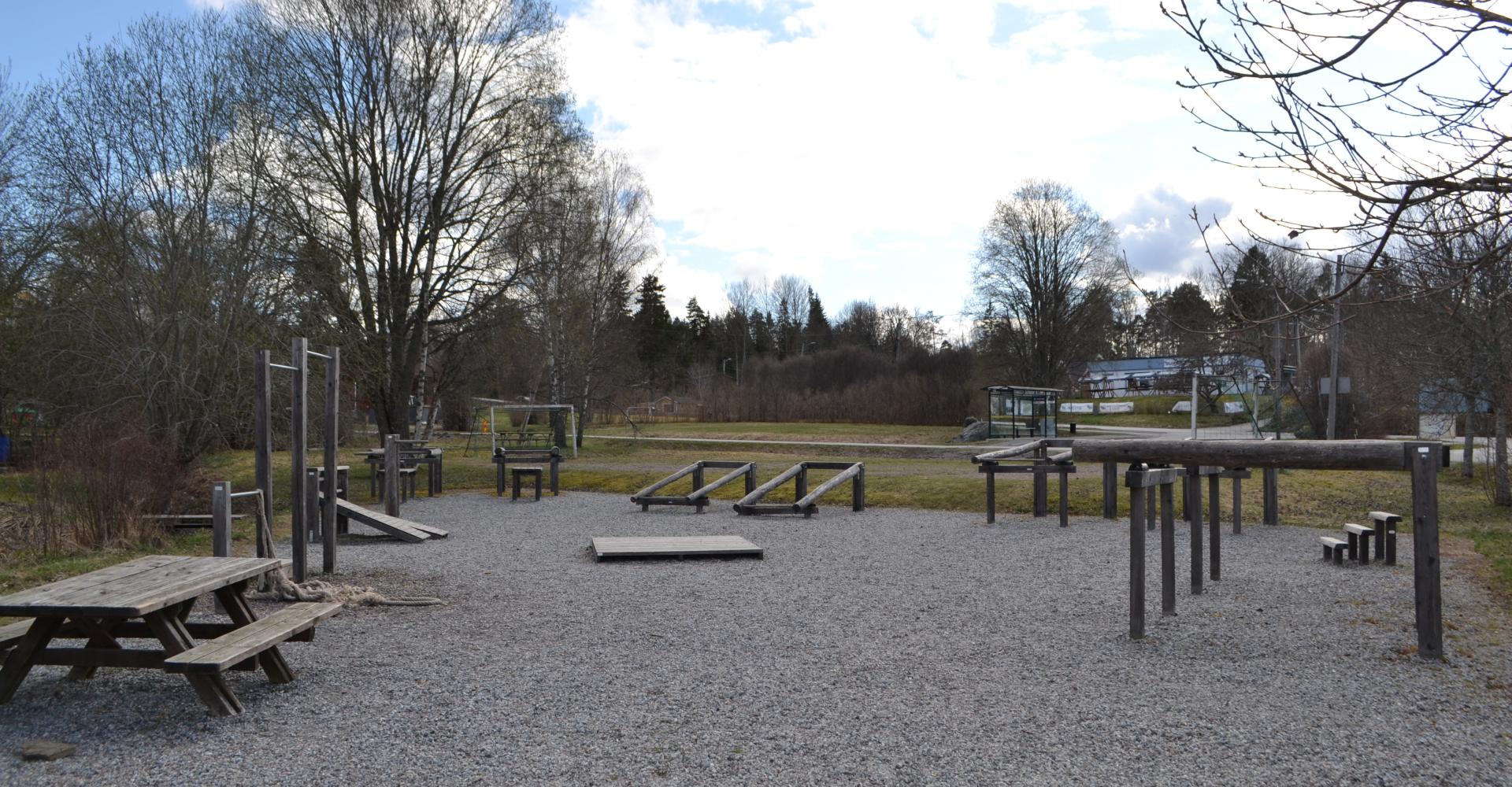 Fastigheten ligger i direkt närhet till minilivs och busshållplats. Det är kort gångavstånd till skola F-6 och tåg som tar dig hela vägen till Stockholm.