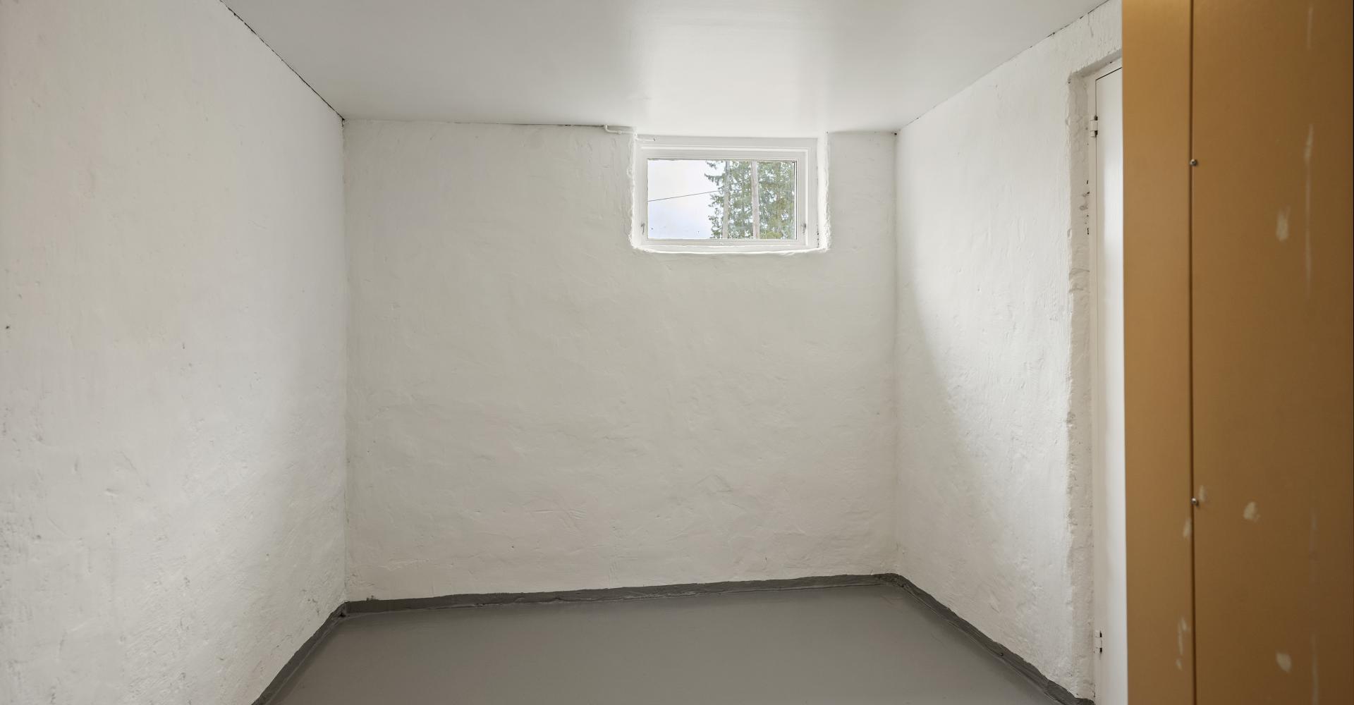 Förråd med målat betonggolv -26, målade väggar och tak -26.
