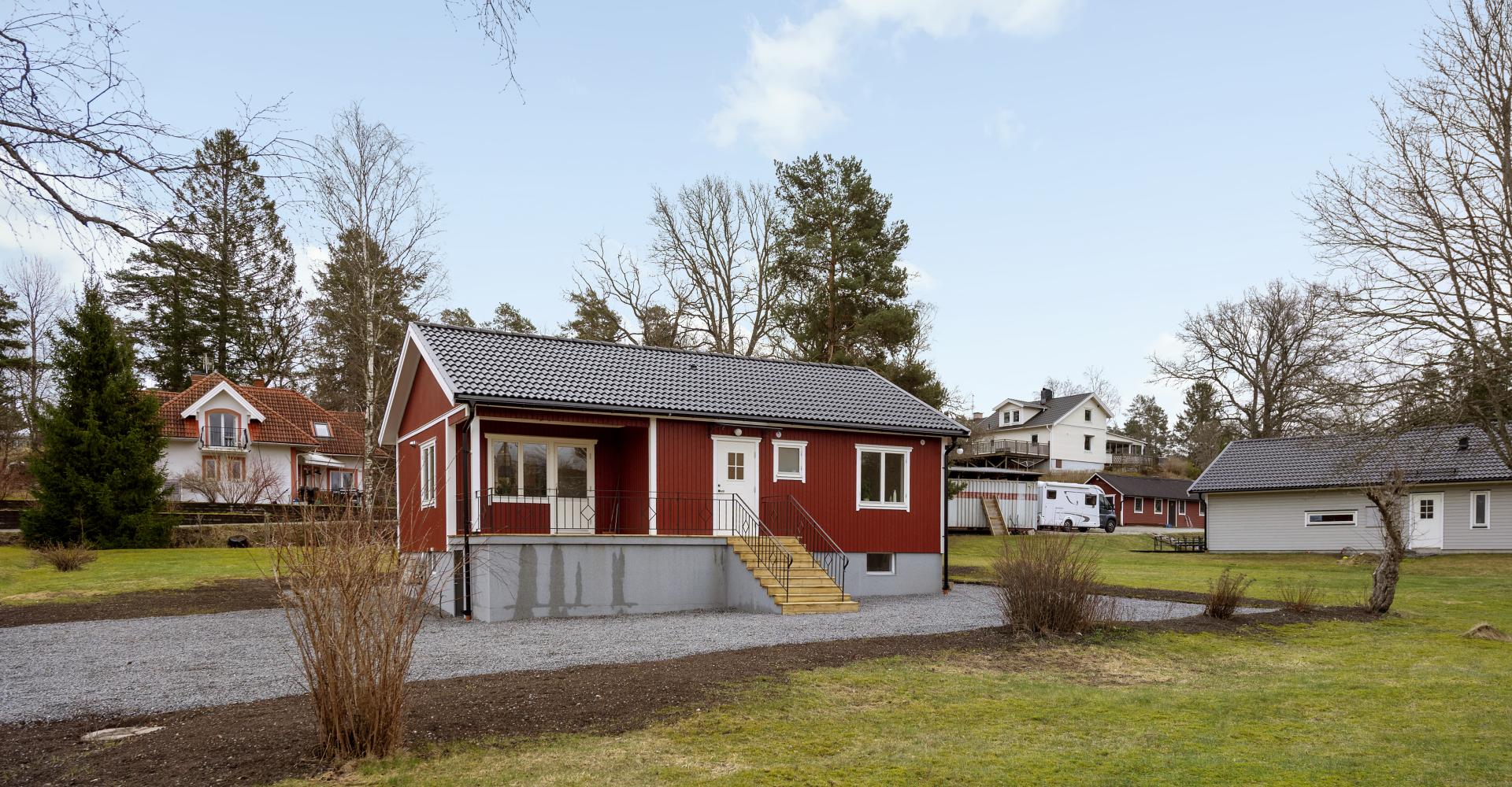 Nyrenoverad villa med hel källare på stor plan trädgårdstomt. Villan är till stora delar nyrenoverad 2025-26. Hela entrévåningen är genomgången med nyare kök och helt nytt badrum. Genomgående nya golv och nymålade väggar och tak. Entrévåningen har ett stort kök med utgång till altan. Vardagsrum och två sovrum. Källare med sovrum, tvättstuga, hobbyrum, matkällare och pannrum. Utvändigt har huset fått ny fasad, nytt yttertak och är omdränerat. Även nya fönster är monterat i huset. Fiber är precis indraget i huset.