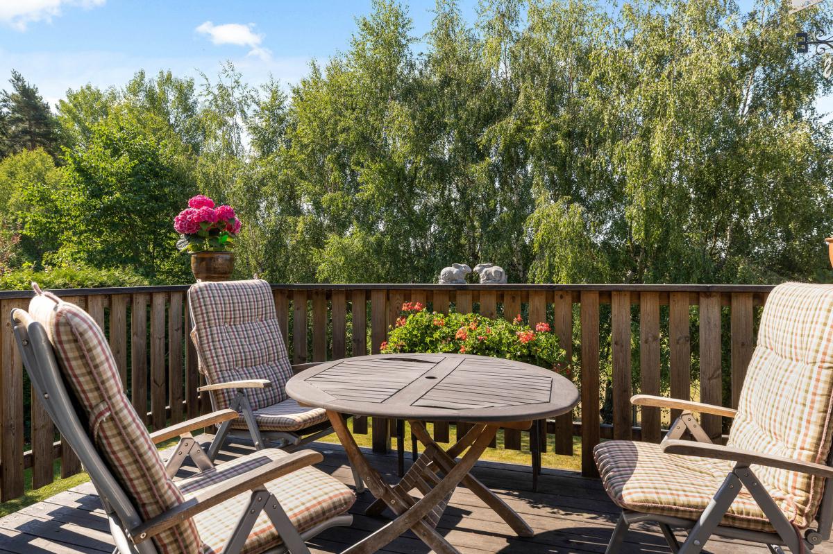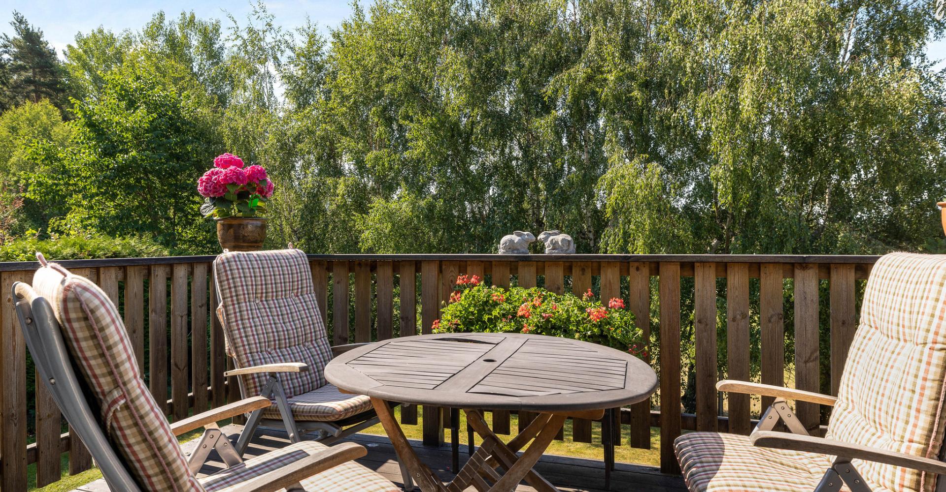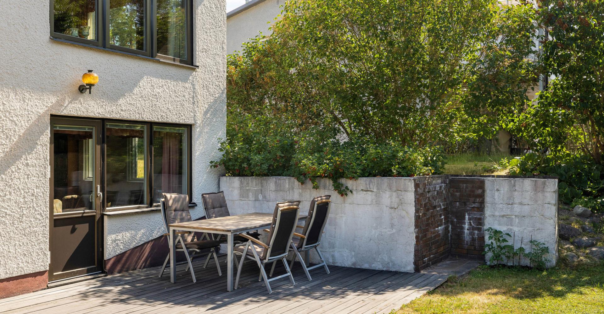 Altan med utgång från gillestuga och ett sovrum, altanen ligger i söderläge.
