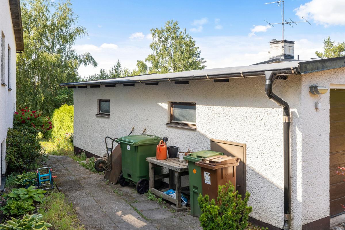 Fastigheten ligger strategiskt bra gränsande mot allmänning, det finns separat garage. På tomten finns det plats för lek både på framsidan och baksidan.