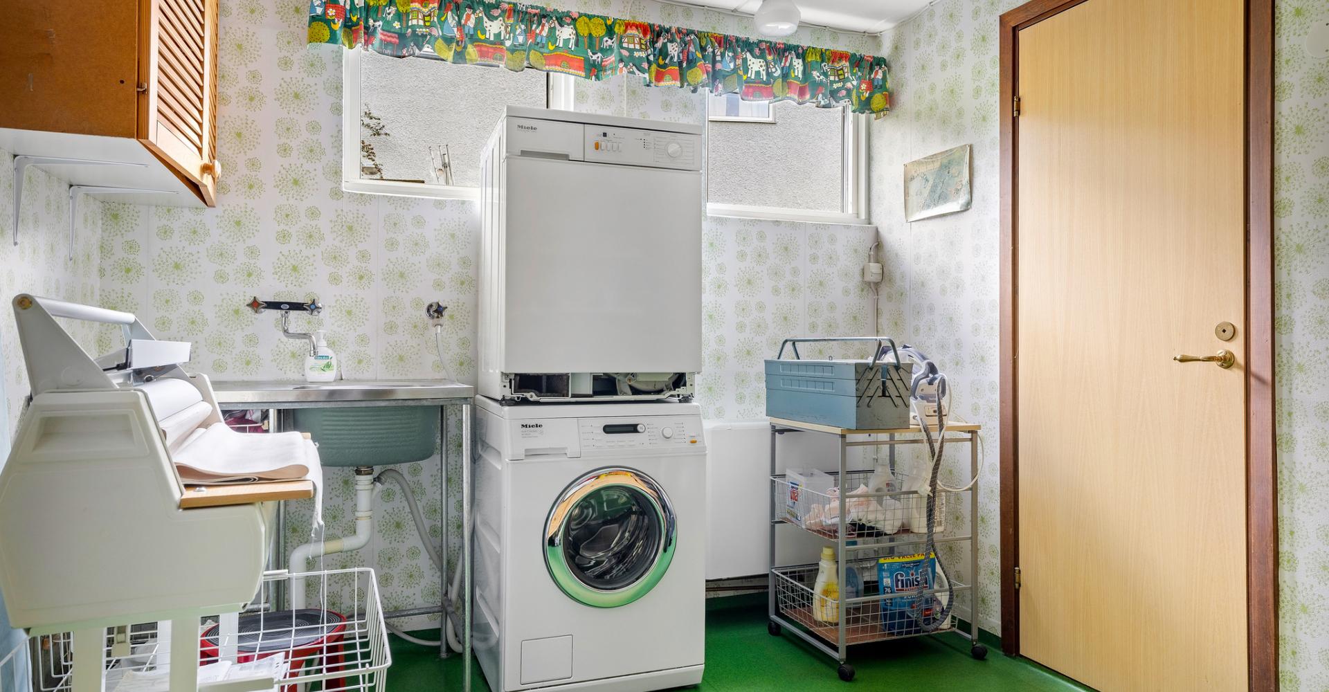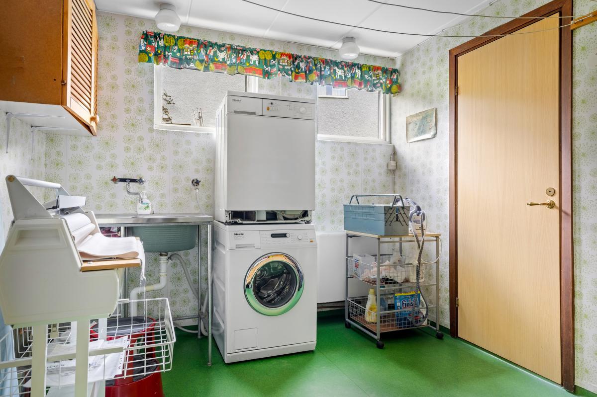 Tvättstuga med tvättmaskin, torktumlare samt tvättho