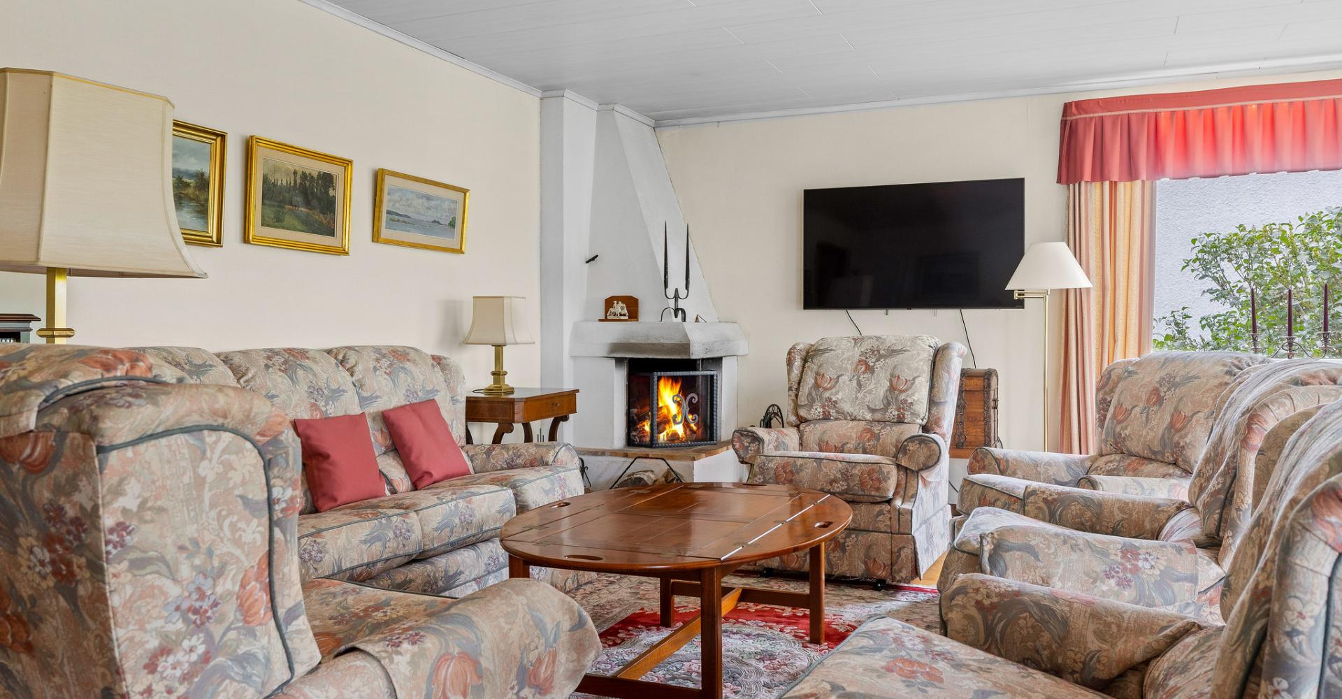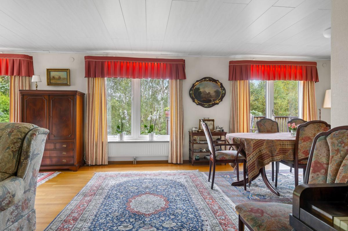 Familjevilla om hela 273 kvm där många renoveringar är gjorda. Stort vardagsrum med öppen spis och matsalsdel, utgång till balkong. Trivsam gillestuga på nedre plan med öppen spis och utgång till altanen. Huset har fem rymliga sovrum, två på övre plan och tre på nedre plan. På övre plan finns förutom två sovrum, vardagsrum, kök, badrum och gäst W.C.